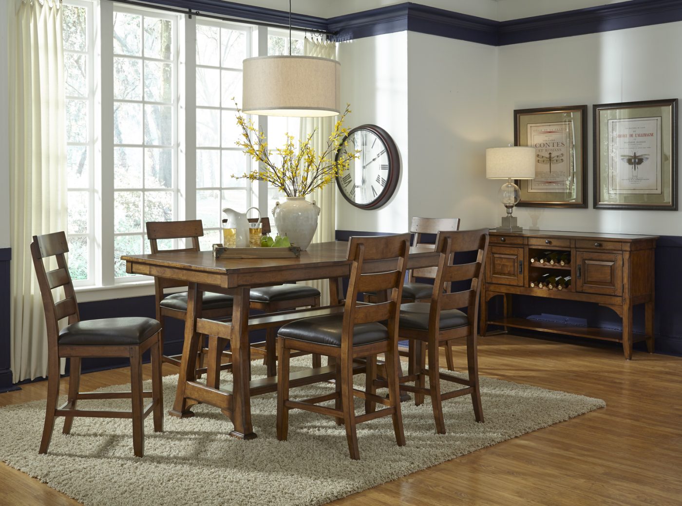 Inspired by sturdy furnishings of the great American lodges, our Ozark dining collection takes on a fresh look in Mango solids. Key elements are blocked and planked tops, as well as chamfered, solid wood structure typical of the Arts and Crafts era. Figured Mango solids with warm honey undertones are enhanced with smoky burnishing for a casual rustic look.