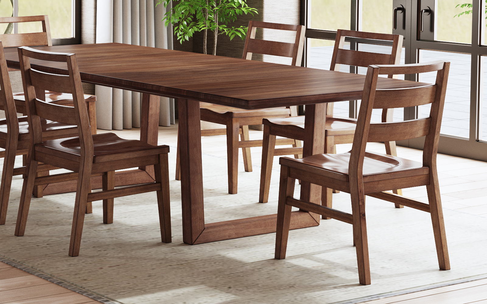 zoom_out_map PreviousNext Ladderback Wood Seat Chair SKU: VOSSA256K Collection: Voss Facebook Twitter LinkedIn Pinterest Details Height: 36 Width: 19.5 Length/Depth: 22.25 Actual Weight: 46.5 Wood Species: Walnut Finish: Sable Wood Tone: Medium Distressing: No Color: Warm Brown Material: Walnut Seat Height: 18.5 Seat Width: More in this Collection Ladderback UPH Seat Chair Ladderback Wood Seat Chair Server Trestle Table