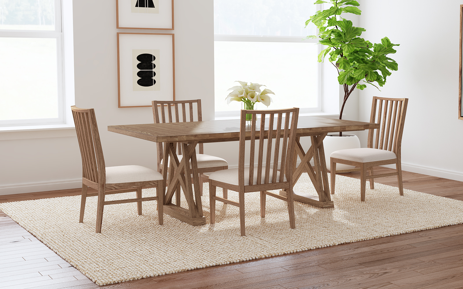 zoom_out_map PreviousNext Trestle Table SKU: WETAC6300 Collection: Weston Facebook Twitter LinkedIn Pinterest Details Height: 30 Width: 42 Length/Depth: 78-96 Wood Species: Oak Finish: Acorn Wood Tone: Light to Medium Color: Light Brown Table Type: Trestle More in this Collection Slatback UPH Seat Chair Trestle Table